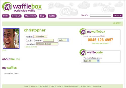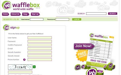 When you join you will be given a unique telephone number, an 0845 number charged at a national rate, your friends can leave a voice message in your Wafflebox which you and your page visitors can listen to on your site.