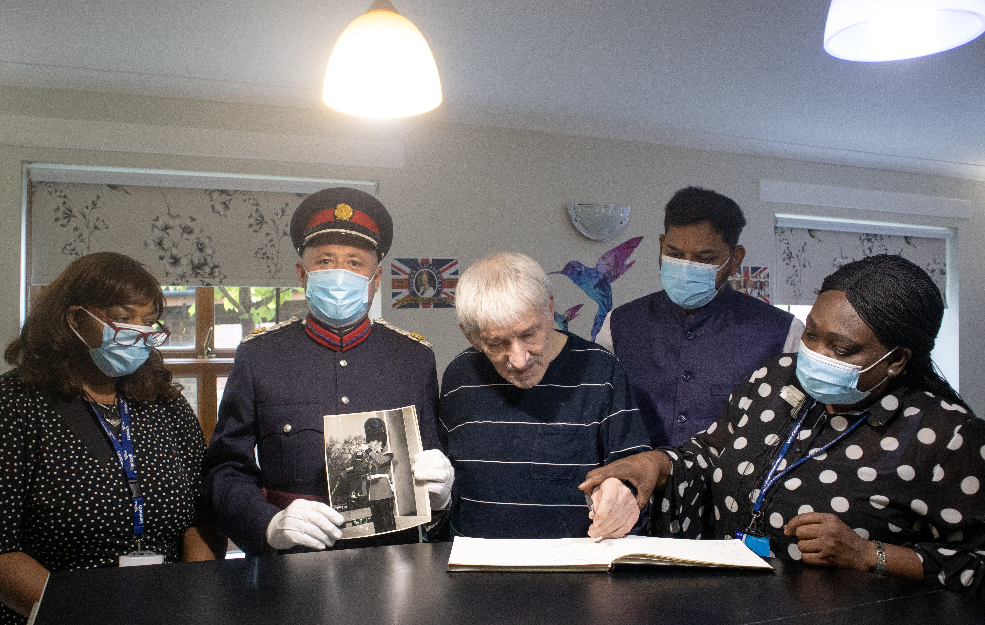 Working with Lambeth council officers, and with the support of the Mayor of Lambeth, Christopher visited 10 residential homes across the borough. Here he heard many stories from residents, of their memories of the Queen. He met Trevor who had served in the Queen’s Guard, and another resident spoke of how he was a pilot for Her Majesty.